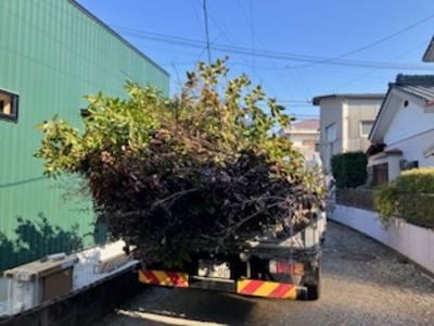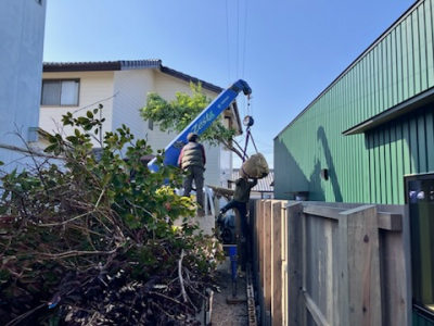 まずは大小さまざまな木々を3~4人で丁寧に運びおろしていきます。