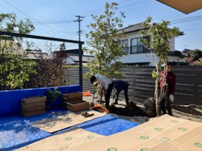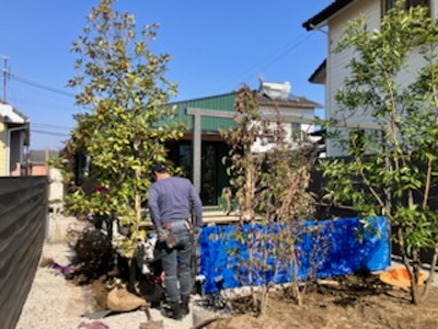 現場は引き続き、外構工事、植栽工事と完成へ向けて整えていきます。