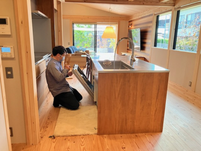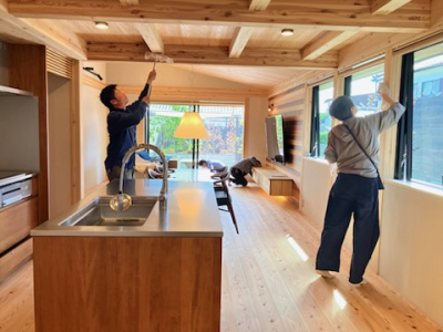 完成お披露目会をおえた「碧風の平屋」 お引渡し前の最終チェックをかねた磨きを行いました。