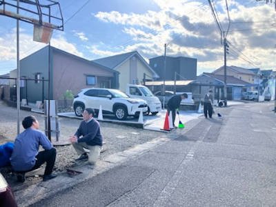 現場は材料の搬入から駐車場の確保、近隣の方々へのご挨拶など 入念に下準備を進めこの日を迎えました。