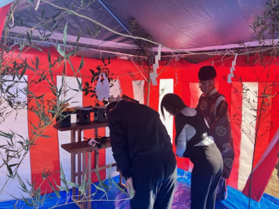 地鎮祭とは工事を始める前にこの地の神様へ工事の安全や繁栄を祈願する神事。