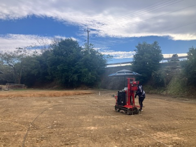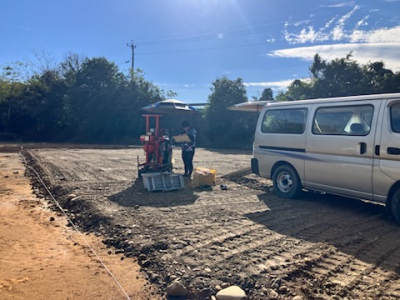 現場では地盤調査をおこないました。