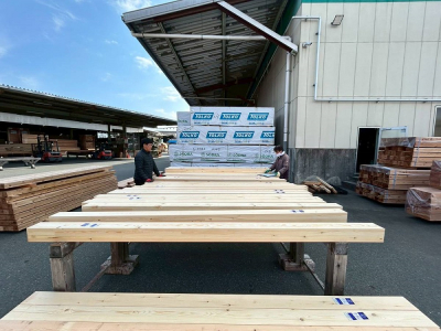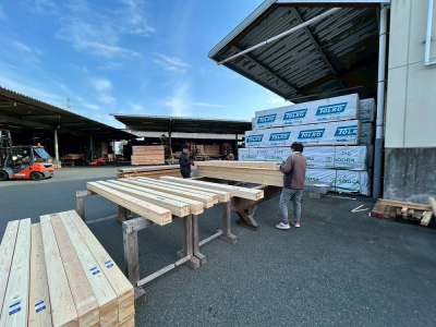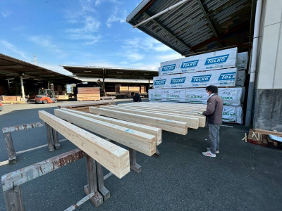 現場「house y」では着工前の事前準備作業のひとつである 番付 を行う為に九州最大級のプレカット工場へ行って来ました!