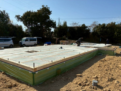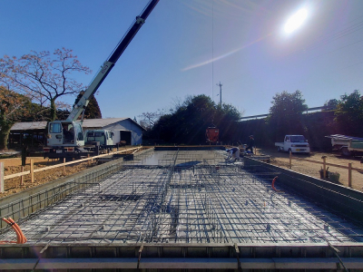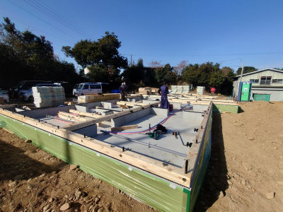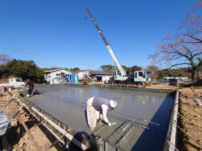 現場「house y」は JIOによる配筋検査合格後、底盤部分のコンクリート打設を行いました!