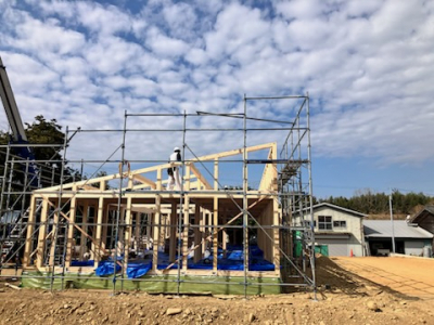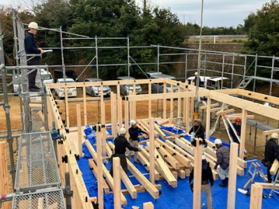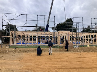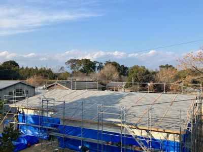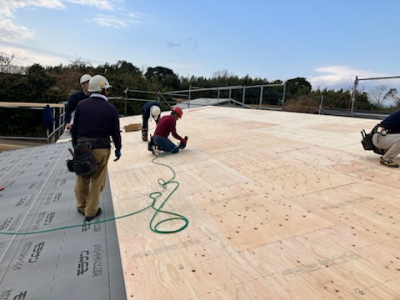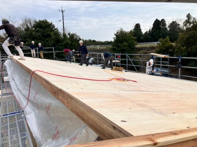 建て方工事も終盤戦へ突入し屋根工事へ。