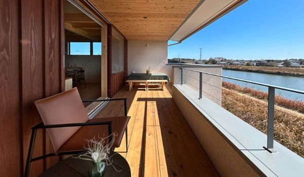 リビングから繋がるルーフバルコニー。空のブルーとせせらぎを感じる至福の時を、心ゆくまでおたのしみください。