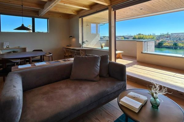 リビングから繋がるルーフバルコニー。空のブルーとせせらぎを感じる至福の時を、心ゆくまでおたのしみください。